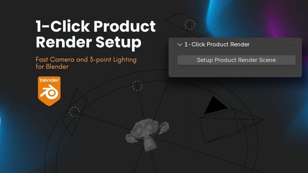 You’ll get a Blender addon that instantly sets up camera, 3-point lighting, and render settings with one click.