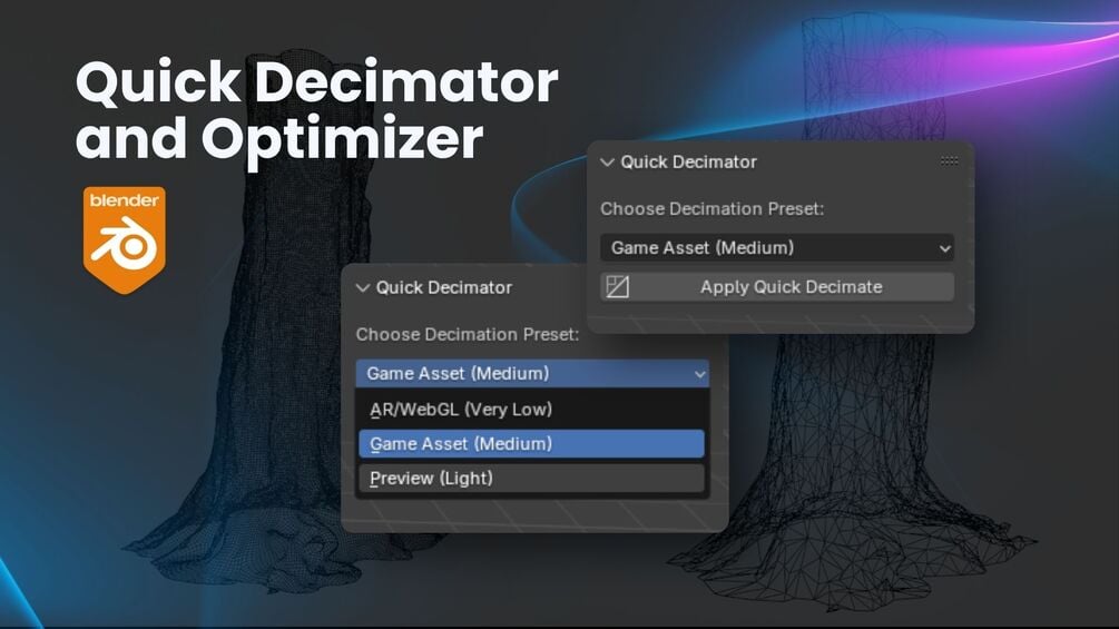 You'll get a one-click Blender addon to instantly decimate meshes using presets for AR, WebGL, and game-ready optimization.
